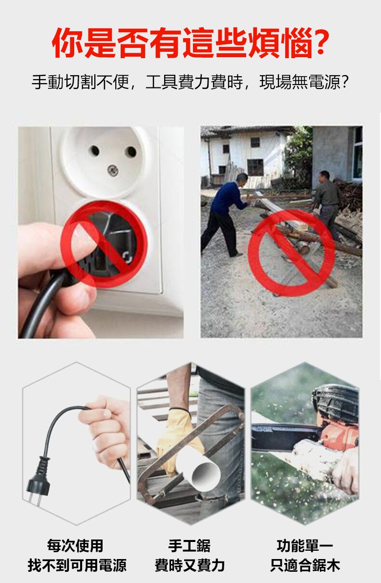 15分鐘前【德國精工鋰電鋸】鋼、鐵、磚頭、木材,統統都能鋸!續航久、充電快,方便攜帶,一機多用 - 26V德國精工往複鋸(機頭+1充2電)贈工具箱+5鋸條NT$2290