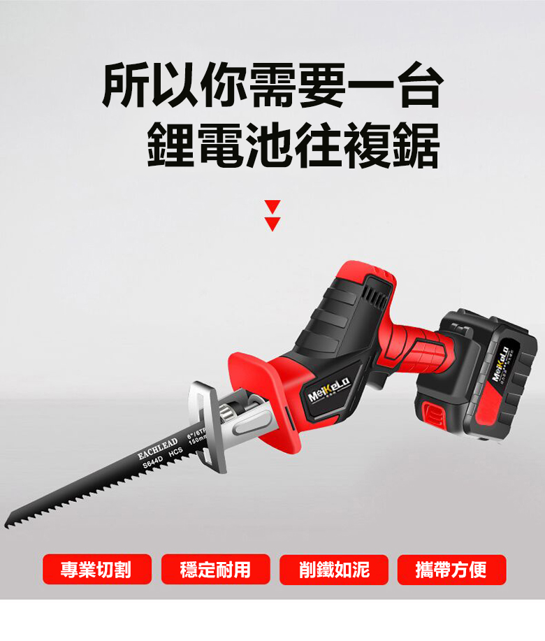 15分鐘前【德國精工鋰電鋸】鋼、鐵、磚頭、木材,統統都能鋸!續航久、充電快,方便攜帶,一機多用 - 26V德國精工往複鋸(機頭+1充1電)贈工具箱+5鋸條NT$1790