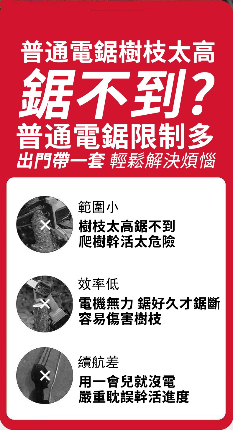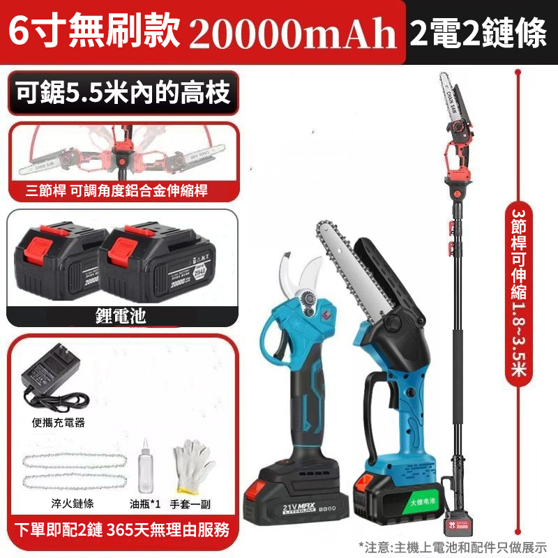 可鋸4米伸縮桿+6吋鋰電鏈條鋸僅需2890元