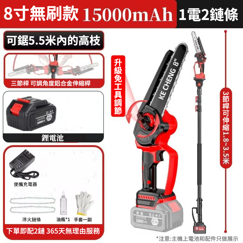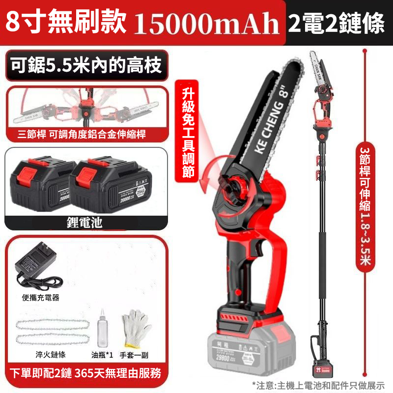可鋸5.5米伸縮桿+8吋鋰電鏈條鋸僅需3790元