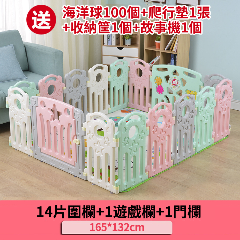 半小時前愛他/她!就給他/她滿滿的愛!寶寶學步遊戲圍欄,呵護寶寶安全【週年特賣,買1送4】 - 可折疊普通款【送爬行墊+海洋球+故事機+收納籃】14圍欄+1遊戲欄+1門欄