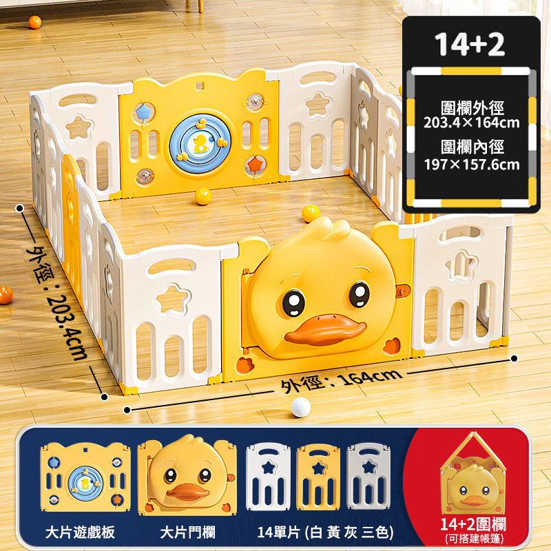 20分鐘前愛他/她!就給他/她滿滿的愛!寶寶學步遊戲圍欄,呵護寶寶安全【週年特賣,買1送4】 - 可折疊小鴨子款【14+2】164*203cm圍欄