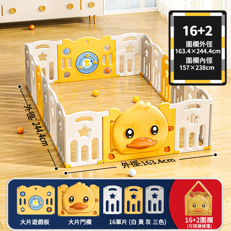 2分鐘前愛他/她!就給他/她滿滿的愛!寶寶學步遊戲圍欄,呵護寶寶安全【週年特賣,買1送4】 - 可折疊小鴨子款【16+2】163*244cm圍欄