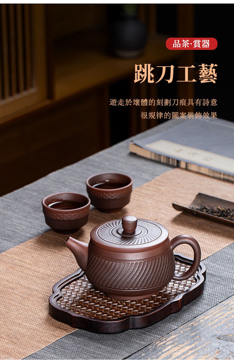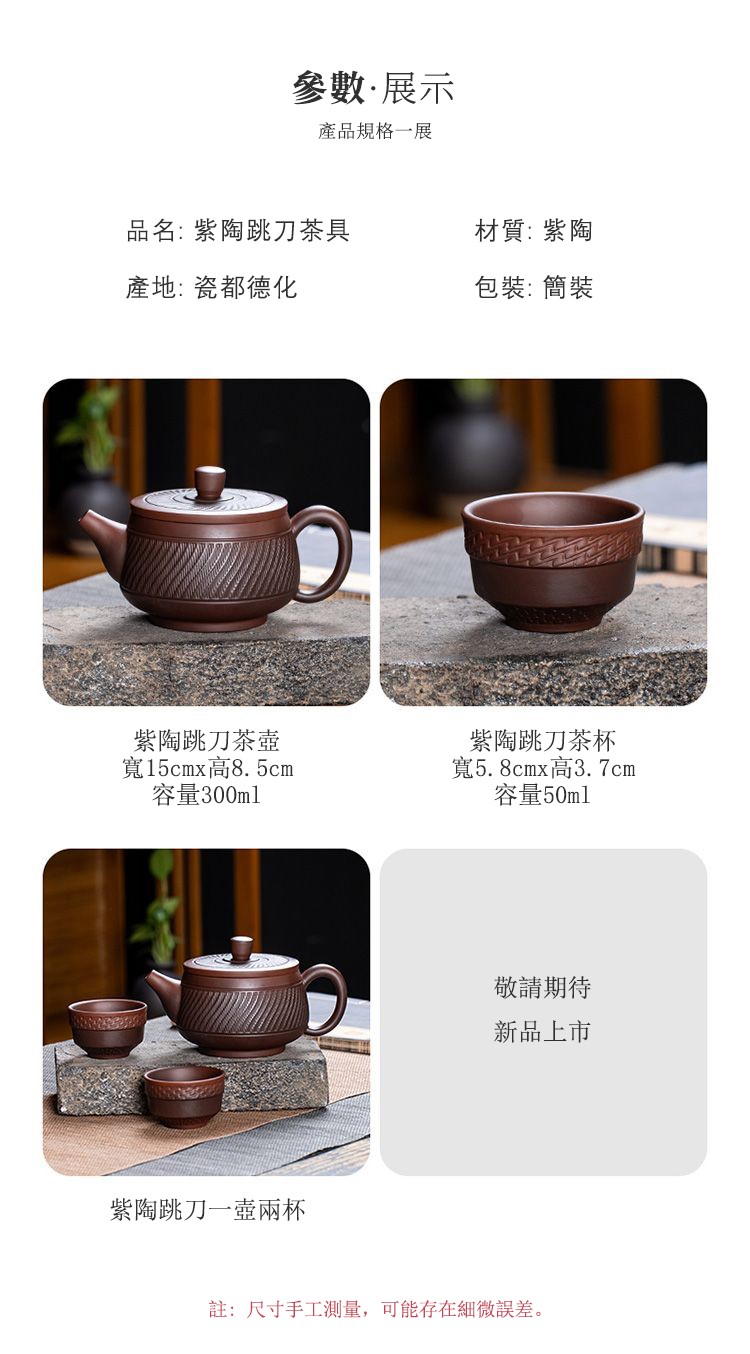 5分鐘前經典傳承・匠心打造|【大師純手工紫陶鳳鳴壺】復古跳刀紋漢瓦壺(一壺兩杯)・黃金大容量300cc + 球孔過濾,鳴音設計顯格調 - 紫陶跳刀壺【單壺】