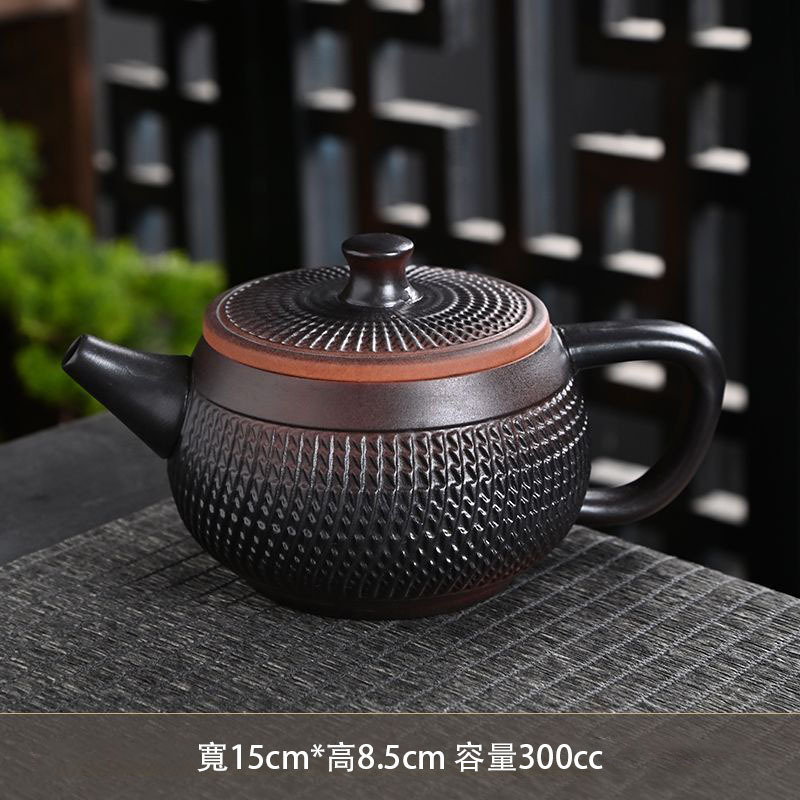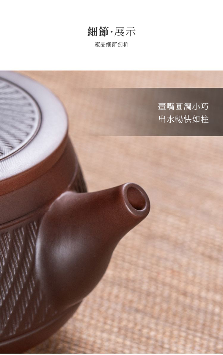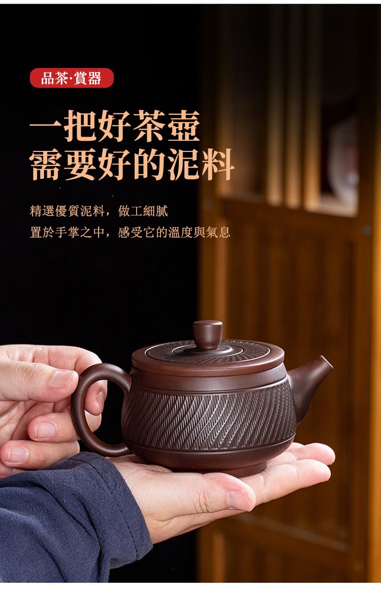 5分鐘前經典傳承・匠心打造|【大師純手工紫陶鳳鳴壺】復古跳刀紋漢瓦壺(一壺兩杯)・黃金大容量300cc + 球孔過濾,鳴音設計顯格調 - 紫陶漢瓦壺【單壺】
