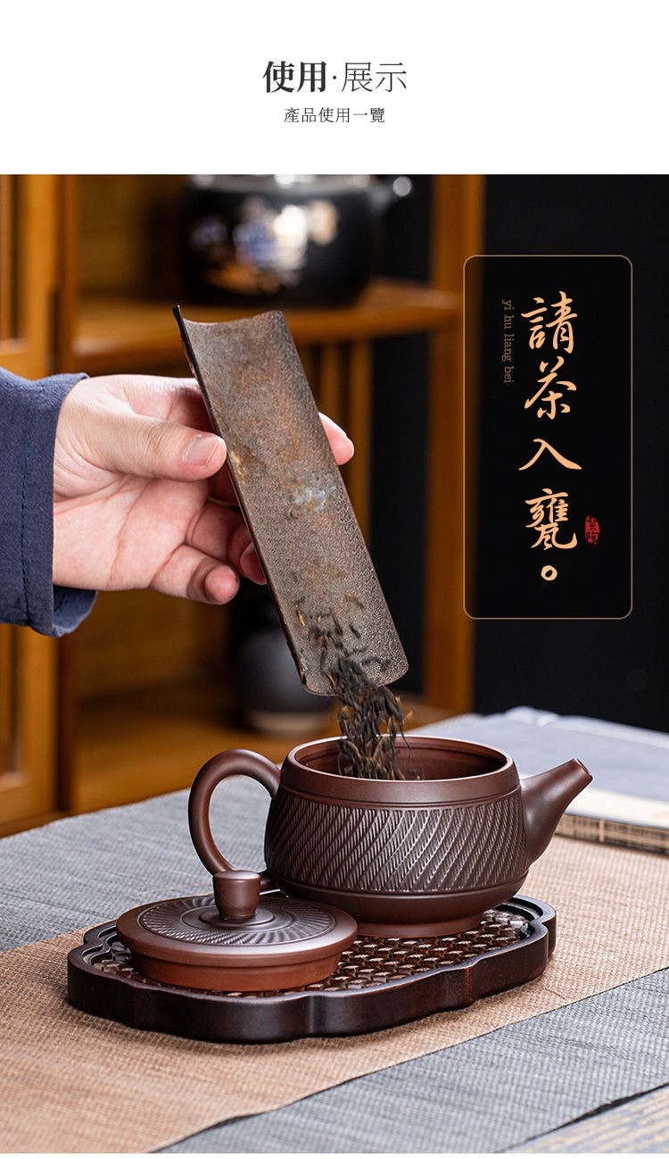 2分鐘前經典傳承・匠心打造|【大師純手工紫陶鳳鳴壺】復古跳刀紋漢瓦壺(一壺兩杯)・黃金大容量300cc + 球孔過濾,鳴音設計顯格調 - 紫陶漢瓦壺【單壺】