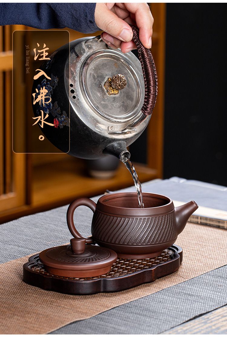 25分鐘前經典傳承・匠心打造|【大師純手工紫陶鳳鳴壺】復古跳刀紋漢瓦壺(一壺兩杯)・黃金大容量300cc + 球孔過濾,鳴音設計顯格調 - 紫陶漢瓦壺【單壺】