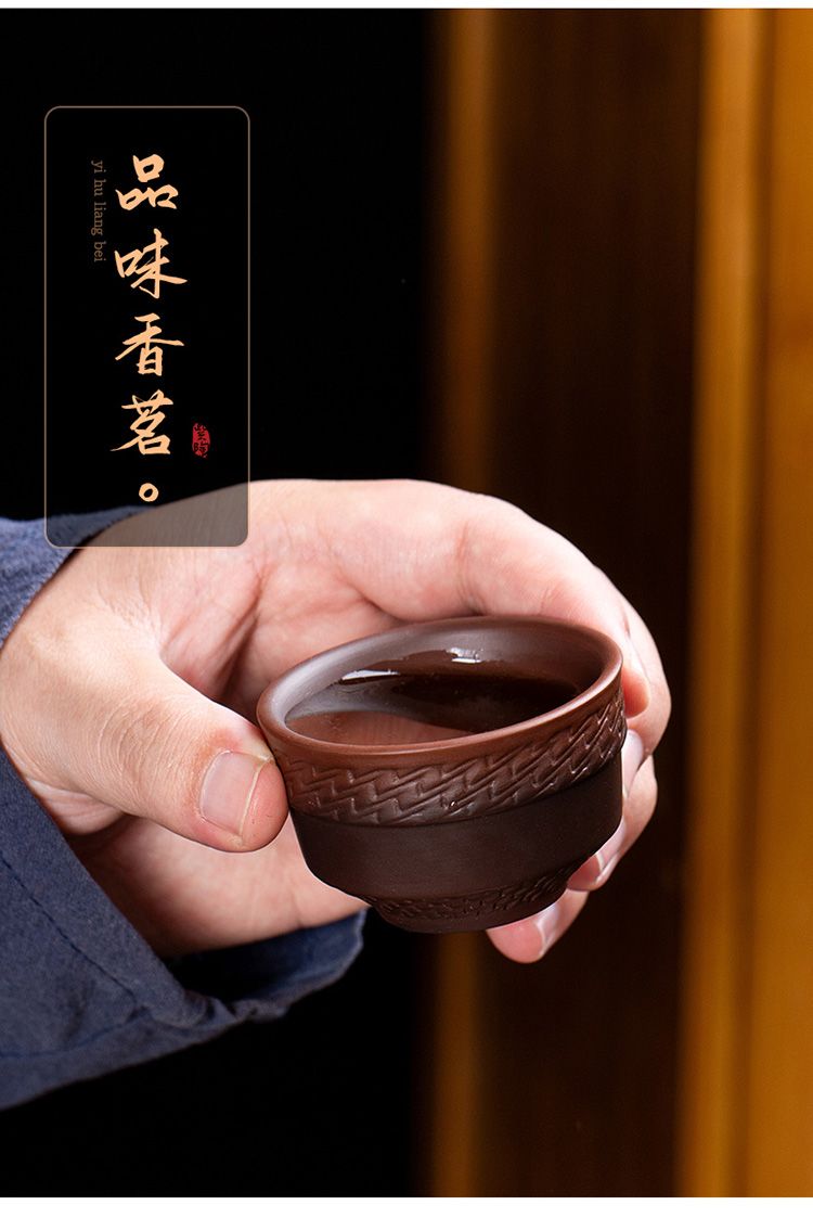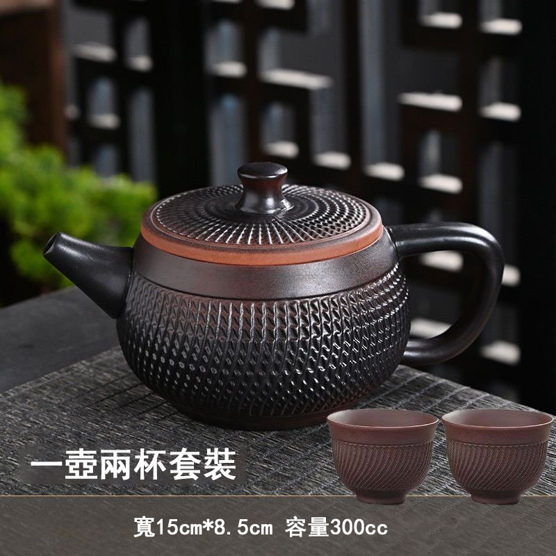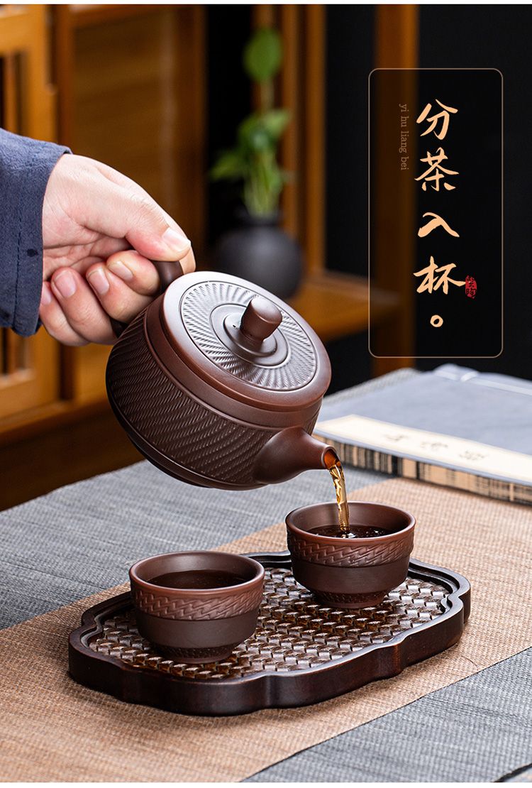 15分鐘前經典傳承・匠心打造|【大師純手工紫陶鳳鳴壺】復古跳刀紋漢瓦壺(一壺兩杯)・黃金大容量300cc + 球孔過濾,鳴音設計顯格調 - 紫陶漢瓦壺【一壺兩杯】
