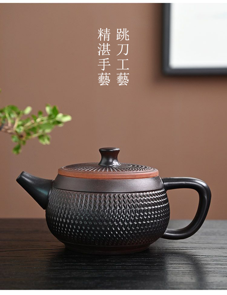 7分鐘前經典傳承・匠心打造|【大師純手工紫陶鳳鳴壺】復古跳刀紋漢瓦壺(一壺兩杯)・黃金大容量300cc + 球孔過濾,鳴音設計顯格調 - 紫陶跳刀壺【單壺】