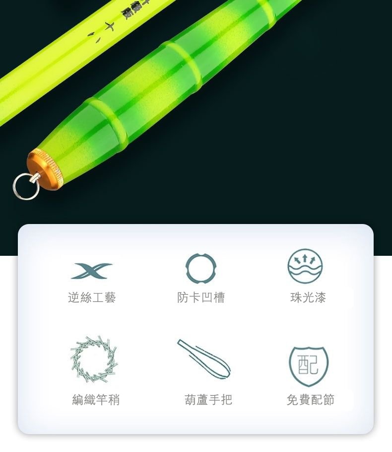 2分鐘前【新上市 買一送一】小玲瓏魚竿,37調綠竹魚竿 超細青竹釣手竿 - (買一送一)21尺(6.3m)+15尺(4.5m)+竿梢 NT$1790