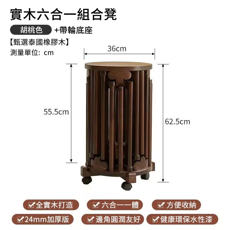 20分鐘前全實木可疊放凳 升級6入組|多功能茶几椅子 二合一設計 MIT台灣製造|茶几+椅子一次搞定 - 【6合1】全實木加厚-可疊放【兩大+四小】底托+萬向輪---NT$6260