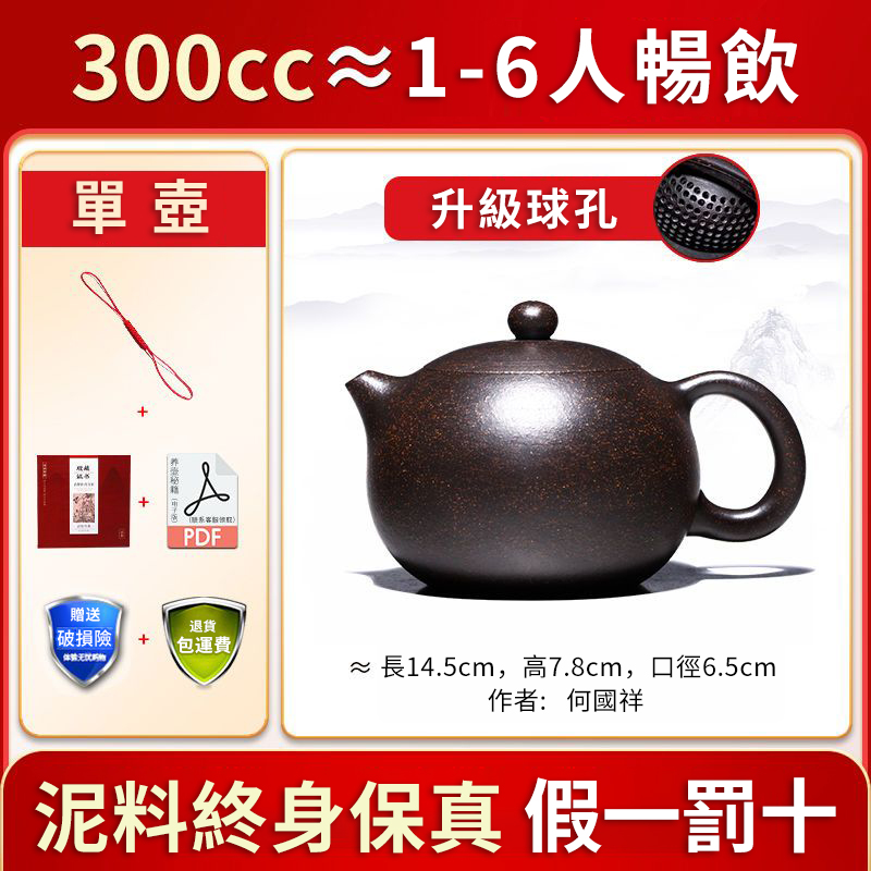 20分鐘前全手工紫砂壺 家藏三十年黑金沙原礦老料 大容量球孔西施壺 - 300CC暢飲容量NTS1750