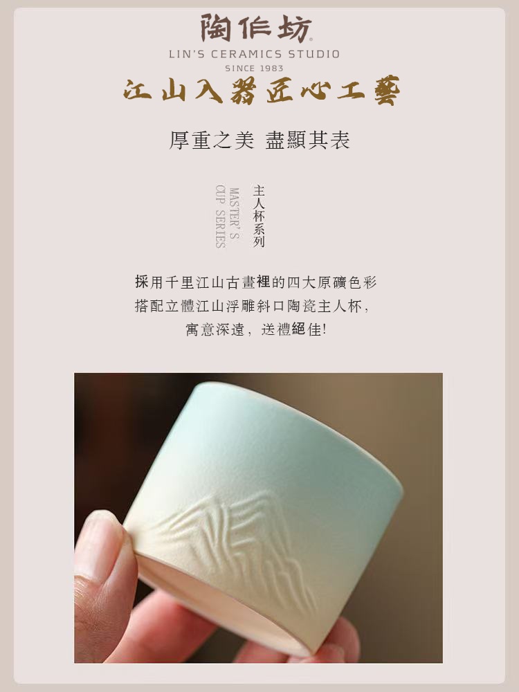 12分鐘前【陶作坊再造支持募資活動】台湾陶藝大師林榮國封窯之作丨錦繡江山陶瓷茶具組,杯側繪有錦繡江山圖,寓意“背有靠山、前程似錦”祝福每一個客人“事業穩固,財源廣進” - 【陶瓷茶具典藏】大師封窯臻品 $763/組 3入組NT$1880