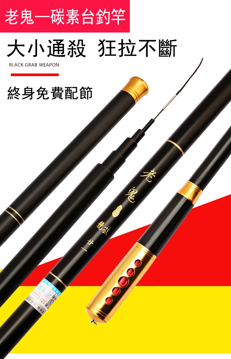25分鐘前【十大名牌—正品老鬼釣魚竿】手桿超輕超硬28調長節鯉鯽魚竿台釣竿套裝 - (買一送一)24尺(7.2m)+21尺(6.3m)+雙竿梢+大禮包