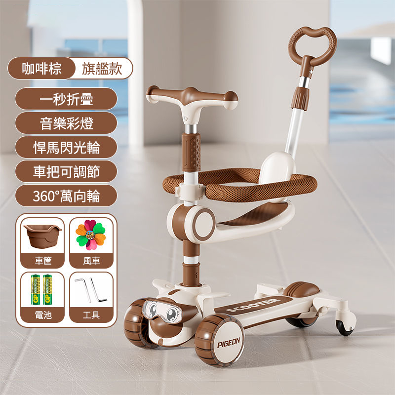 2分鐘前【降價熱賣】新款兒童多功能滑板車,1到14歲都能玩!!陪伴寶寶成長 快樂整個童年! - 咖啡棕【送車筐+風車】