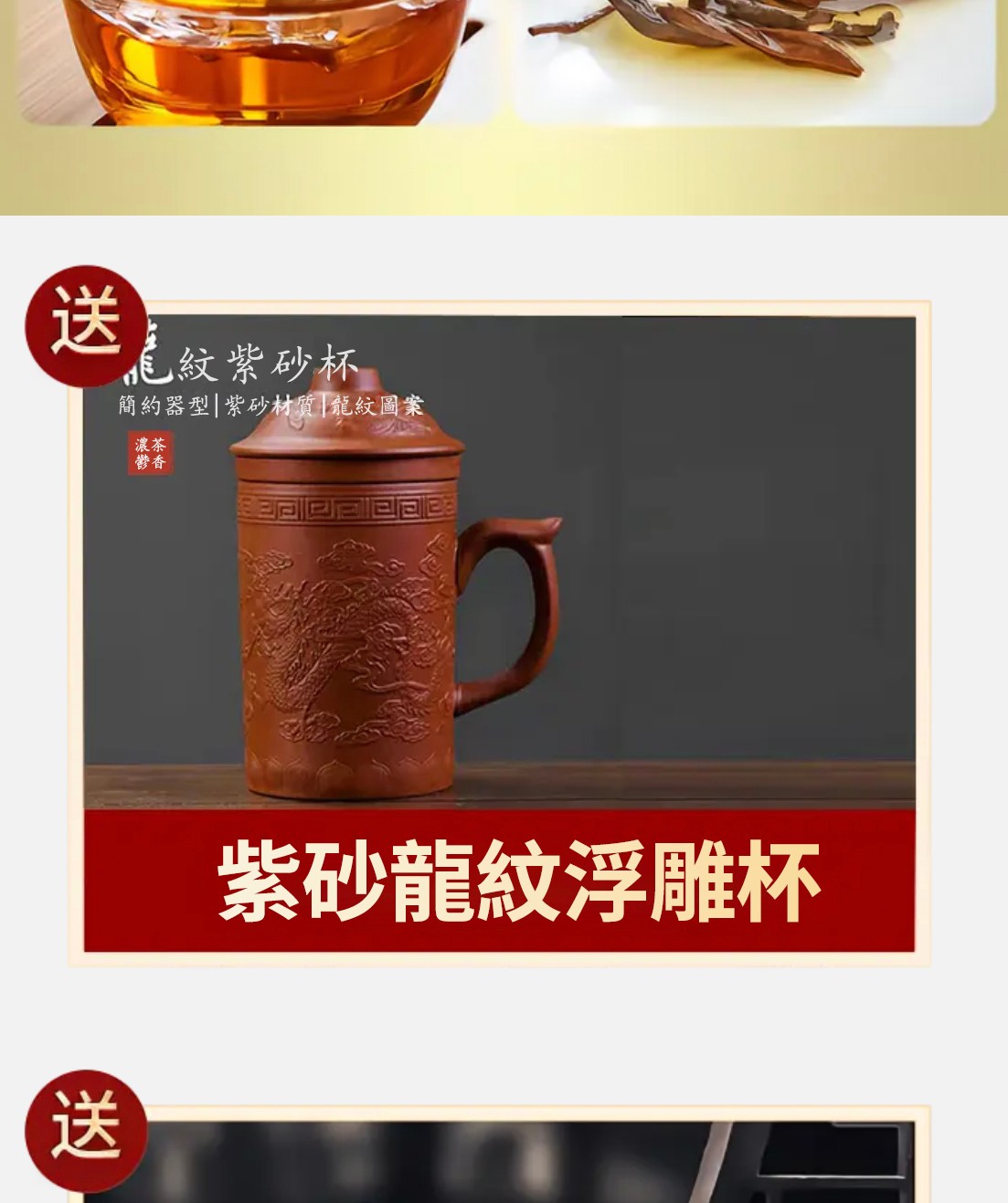 5分鐘前【蛇年到,禮真到】一次品嚐六大濃香型紅茶組合送精美[紫砂龍紋杯紫砂+紫砂一壺四杯+清明上河圖紫砂茶葉罐6個] - 六大紅茶+紫砂1壺4杯+浮雕龍紋杯+紫砂茶葉罐6個---NT$2280