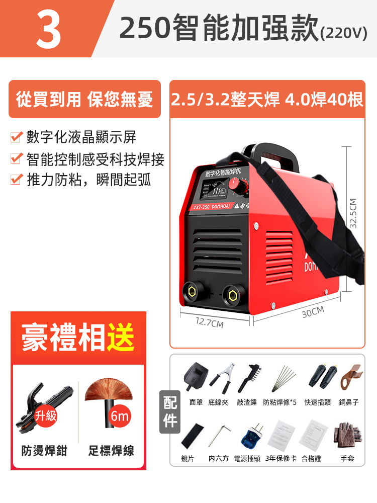 5分鐘前業內焊機領軍品牌【德國DOMHOAI】全新二代數字化電焊機,瞬間起弧,長焊4.0焊條 - 【250-220V】智能加强款+防燙焊鉗+6米焊線+大禮包