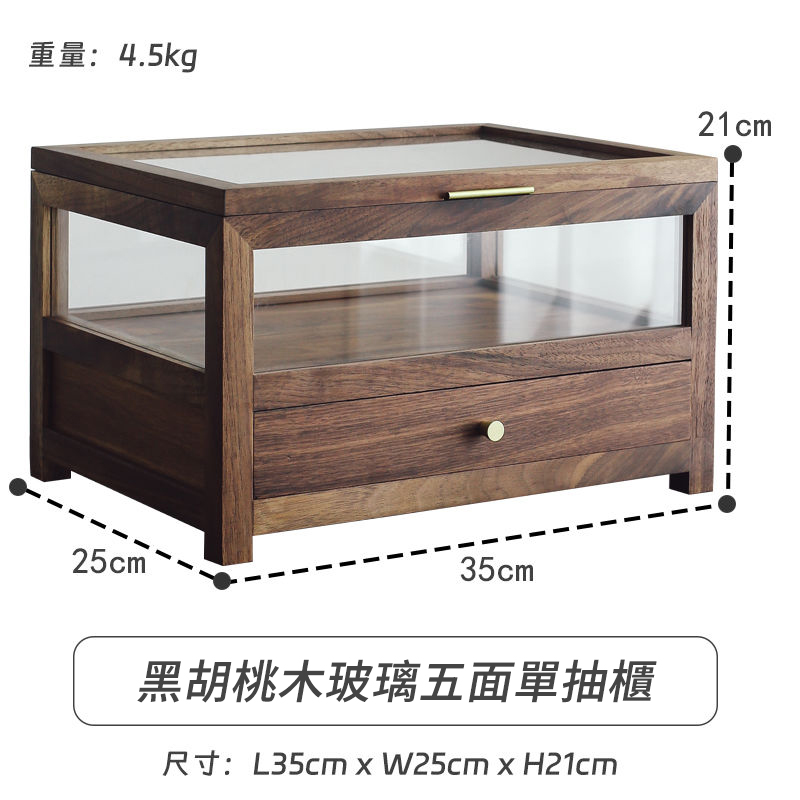 5分鐘前「純手工匠製」胡桃木製作桌面博古架 ,節省空間 大氣典雅的茶具置物架 - 黑胡桃木-五面玻璃盒