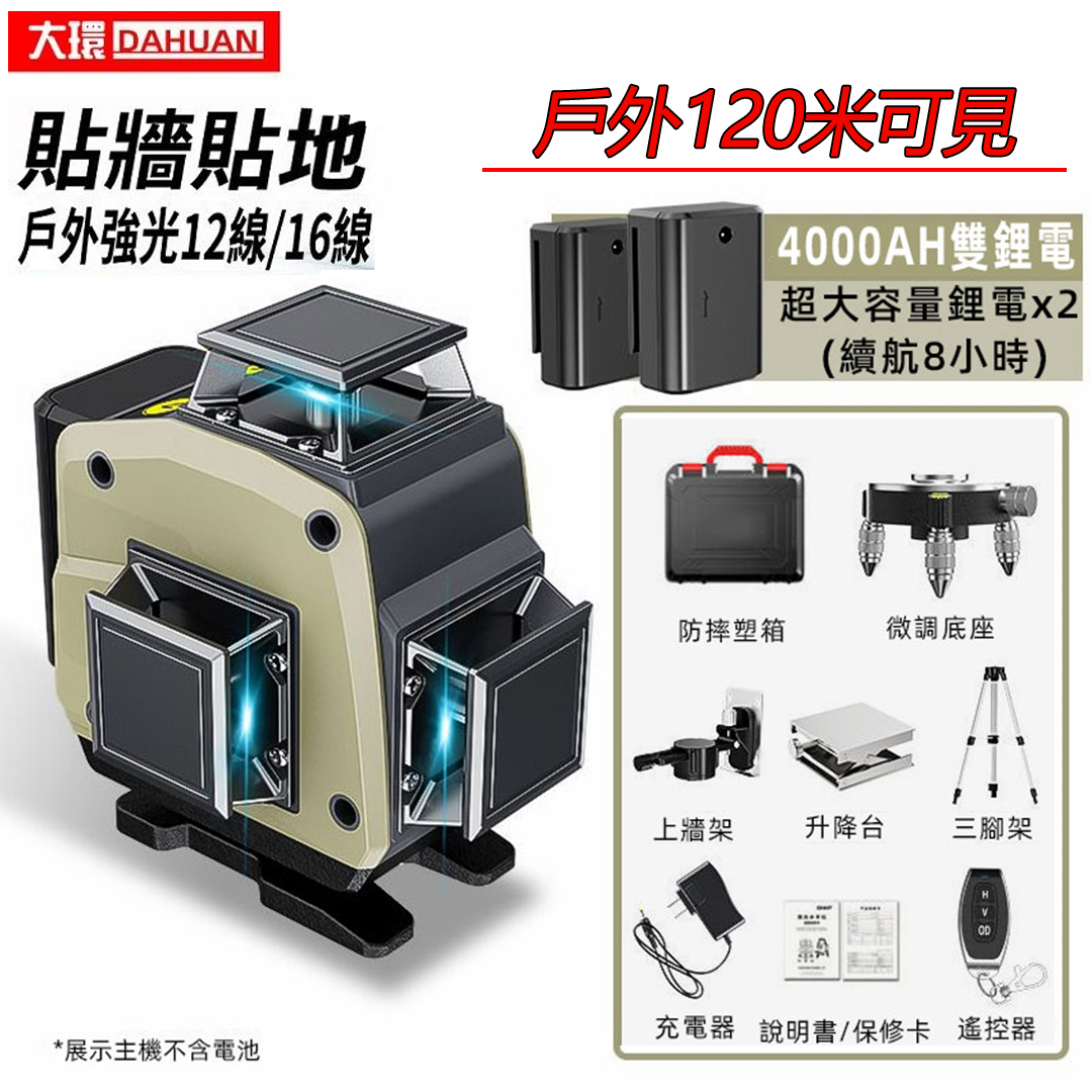 (綠光/藍光同價,戶外120米可見)德國進口12線16線工程級鐳射儀高精度強光自動激光貼地貼牆儀