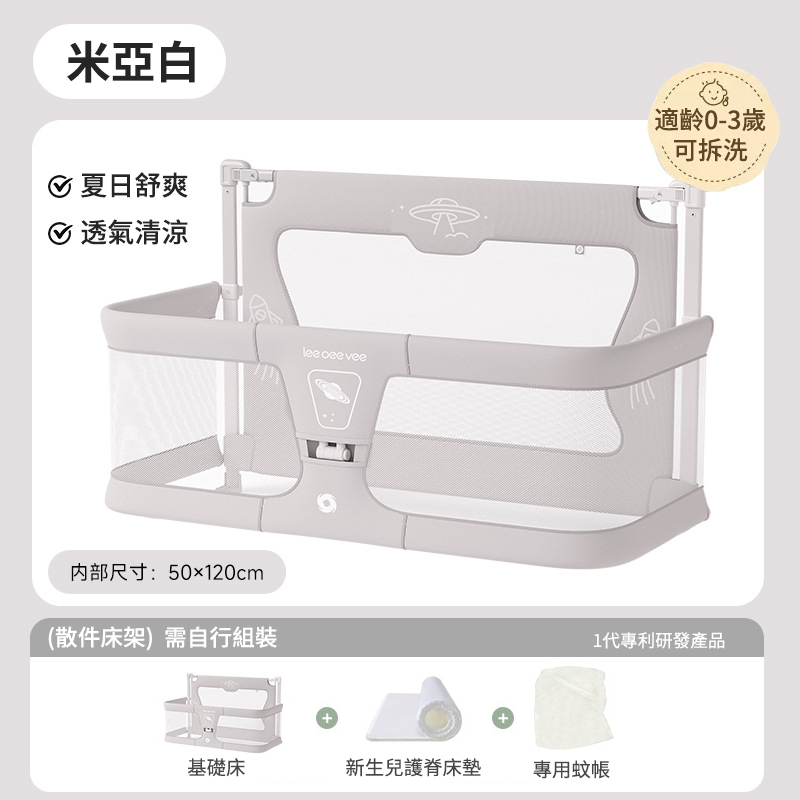 15分鐘前Leeoeevee嬰兒床寶寶床 新生兒多功能小床 便攜式移動床中床 防護欄 - 【夏日特惠】床+專用蚊帳【適齡0-3歲】可拆洗