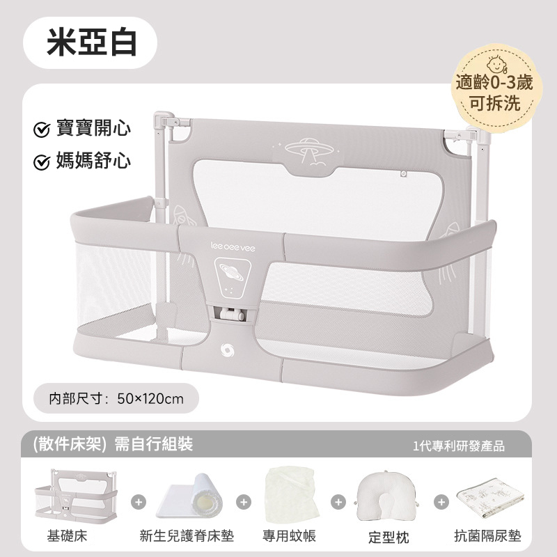 4分鐘前Leeoeevee嬰兒床寶寶床 新生兒多功能小床 便攜式移動床中床 防護欄 - 【寶寶開心 媽媽舒心】床+新生兒護脊床墊+專用蚊帳+定型枕+抗菌隔尿墊【適齡0-3歲】可拆洗