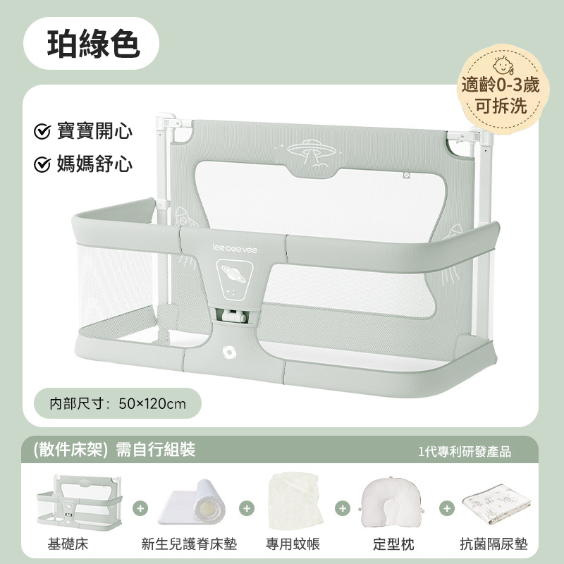 20分鐘前Leeoeevee嬰兒床寶寶床 新生兒多功能小床 便攜式移動床中床 防護欄 - 【寶寶開心 媽媽舒心】床+新生兒護脊床墊+專用蚊帳+定型枕+抗菌隔尿墊【適齡0-3歲】可拆洗