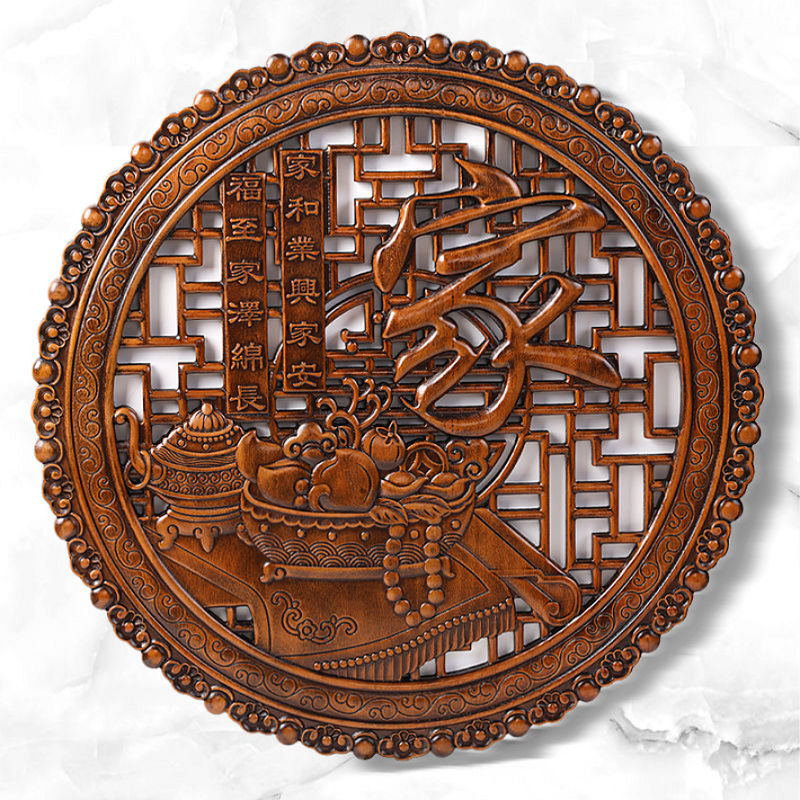 15分鐘前年到!福到! [東陽木雕] 傳承千年木上巧思——天然香樟木雕刻掛件 久放升值 家中旺!年年順! - 經典款-圓形28cm---NT$1480