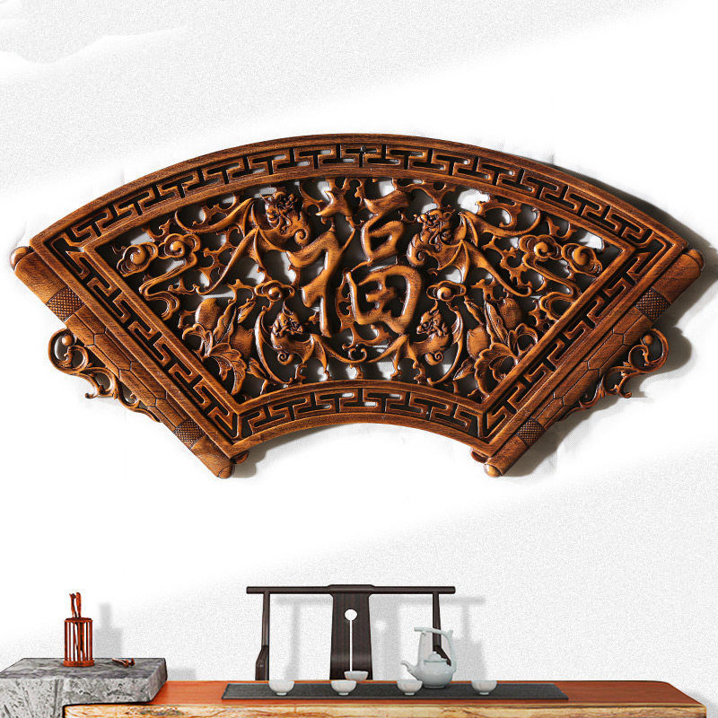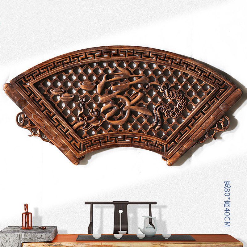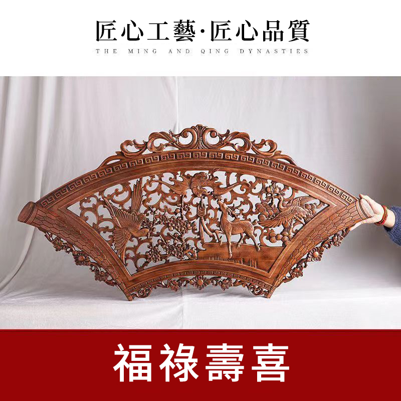 5分鐘前年到!福到! [東陽木雕] 傳承千年木上巧思——天然香樟木雕刻掛件 久放升值 家中旺!年年順! - 典藏款-扇形80*40cm---NT$2480