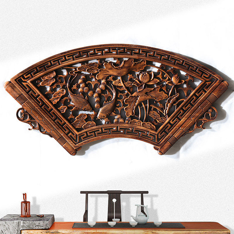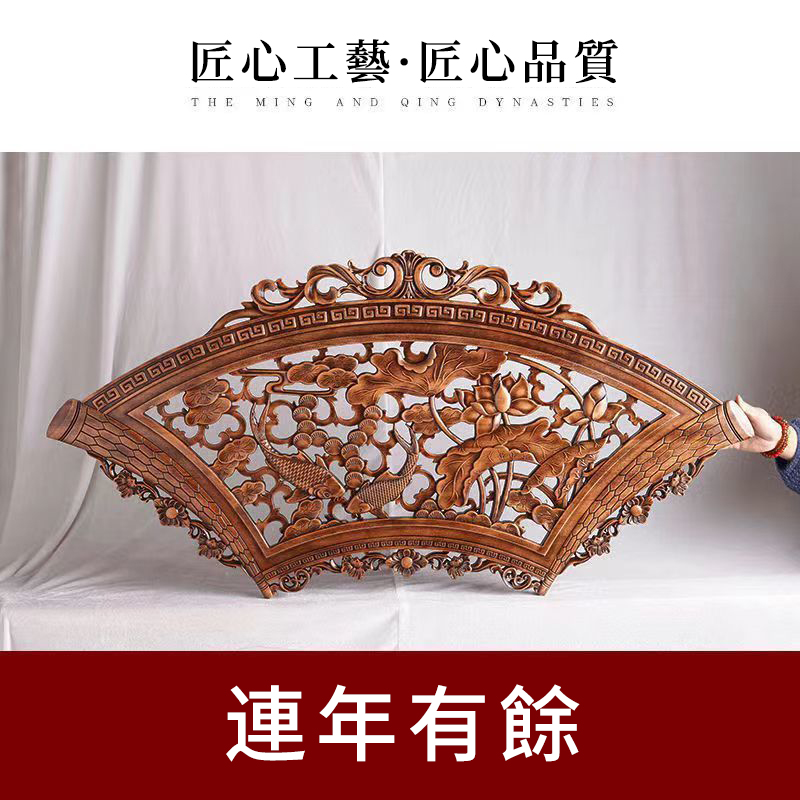 11分鐘前年到!福到! [東陽木雕] 傳承千年木上巧思——天然香樟木雕刻掛件 久放升值 家中旺!年年順! - 典藏款-扇形80*40cm---NT$2480