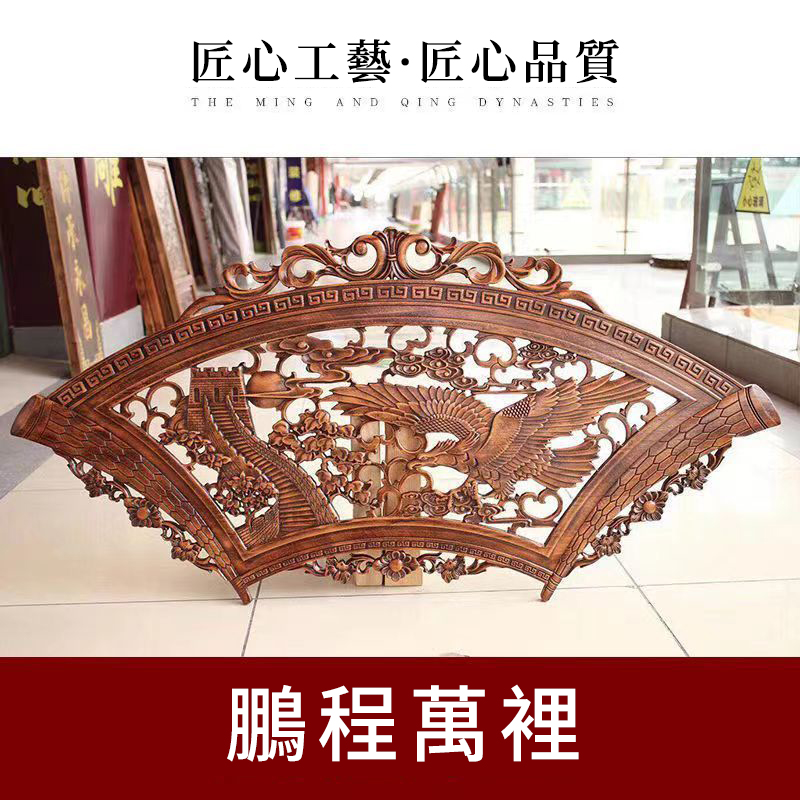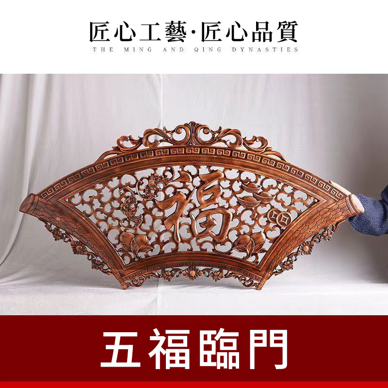 5分鐘前年到!福到! [東陽木雕] 傳承千年木上巧思——天然香樟木雕刻掛件 久放升值 家中旺!年年順! - 典藏款-扇形118*58cm---NT$4880