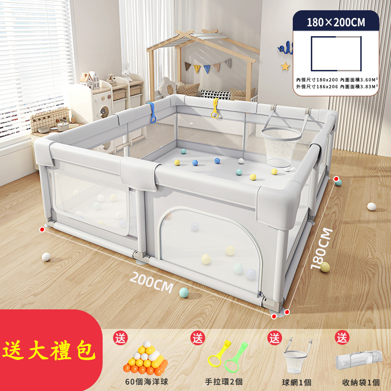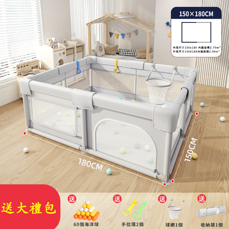 半小時前爸媽社團一致好評!寶寶玩得安心,爸媽終於能喝口熱咖啡【全台熱銷】可移動嬰兒遊戲圍欄!安全防護+防撞設計+輕鬆收納!,室內安全必備! - 180 X 200公分 +小球框+大禮包