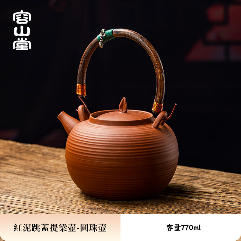 半小時前2025年新中式會跳舞的原礦紅泥砂銚壺 ❘ 純手作 側把急須壺圍爐煮茶壺 - 紅泥跳蓋提梁壺-圓珠壺