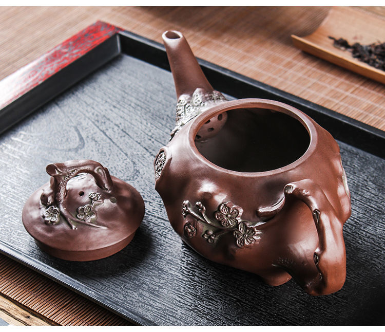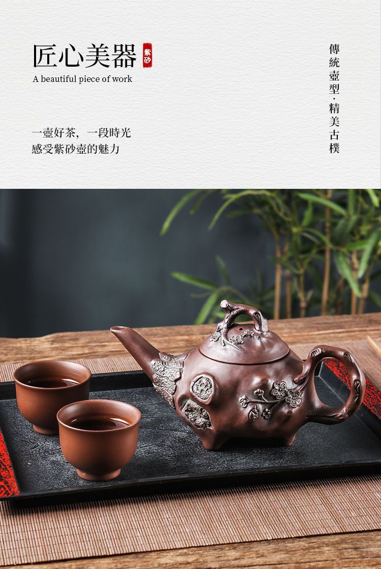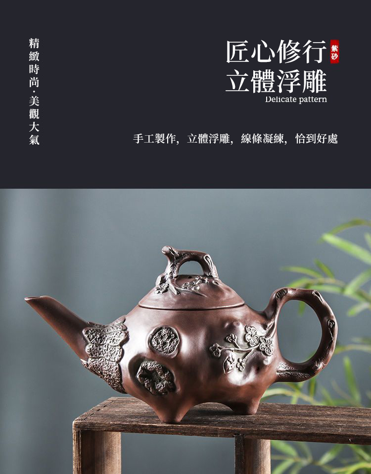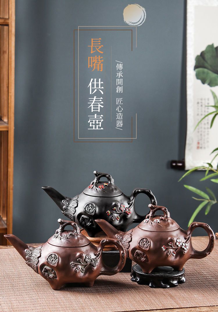 7分鐘前✩ 絕版收藏!正宗宜興紫砂朱泥長嘴供春壺 ❘ 黃金大容量500cc ❘ 純手工浮雕匠製,泡茶更香 - 紫砂朱泥長嘴供春壺500cc