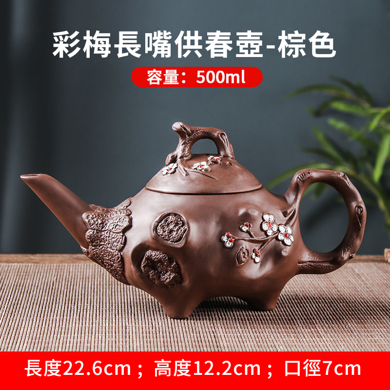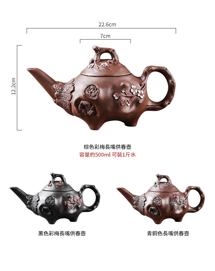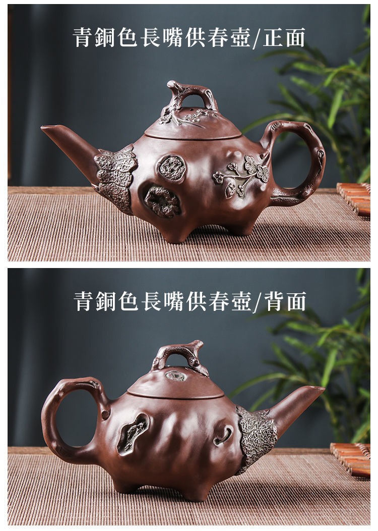 20分鐘前✩ 絕版收藏!正宗宜興紫砂朱泥長嘴供春壺 ❘ 黃金大容量500cc ❘ 純手工浮雕匠製,泡茶更香 - 紫砂朱泥長嘴供春壺500cc