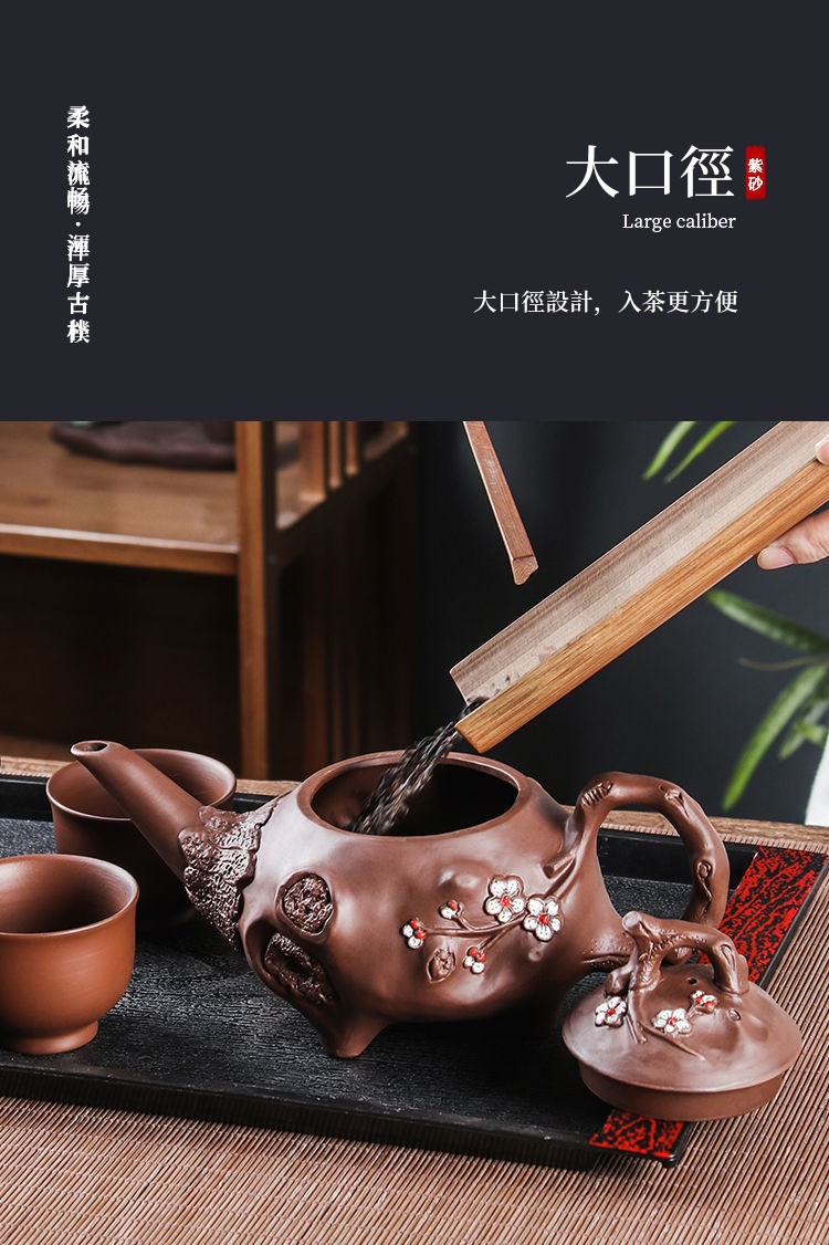 半小時前✩ 絕版收藏!正宗宜興紫砂朱泥長嘴供春壺 ❘ 黃金大容量500cc ❘ 純手工浮雕匠製,泡茶更香 - 紫砂朱泥長嘴供春壺500cc