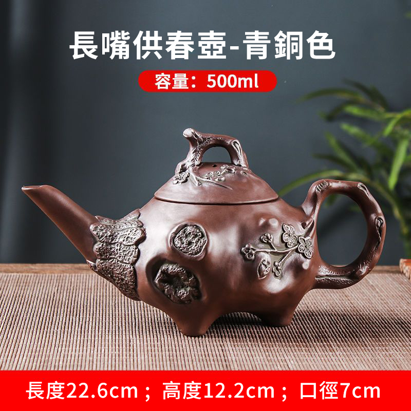 5分鐘前✩ 絕版收藏!正宗宜興紫砂朱泥長嘴供春壺 ❘ 黃金大容量500cc ❘ 純手工浮雕匠製,泡茶更香 - 紫砂朱泥長嘴供春壺500cc
