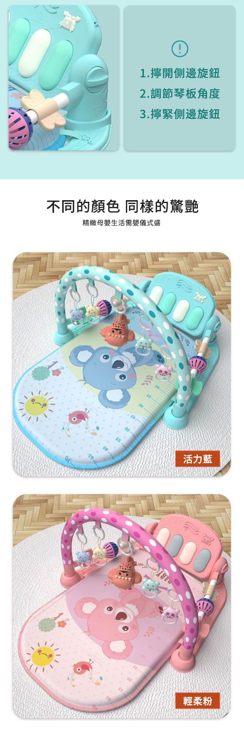 所以建議挑選健力架時,要選擇色彩豐富的款式,對於寶寶的視覺發展會更有幫助唷~