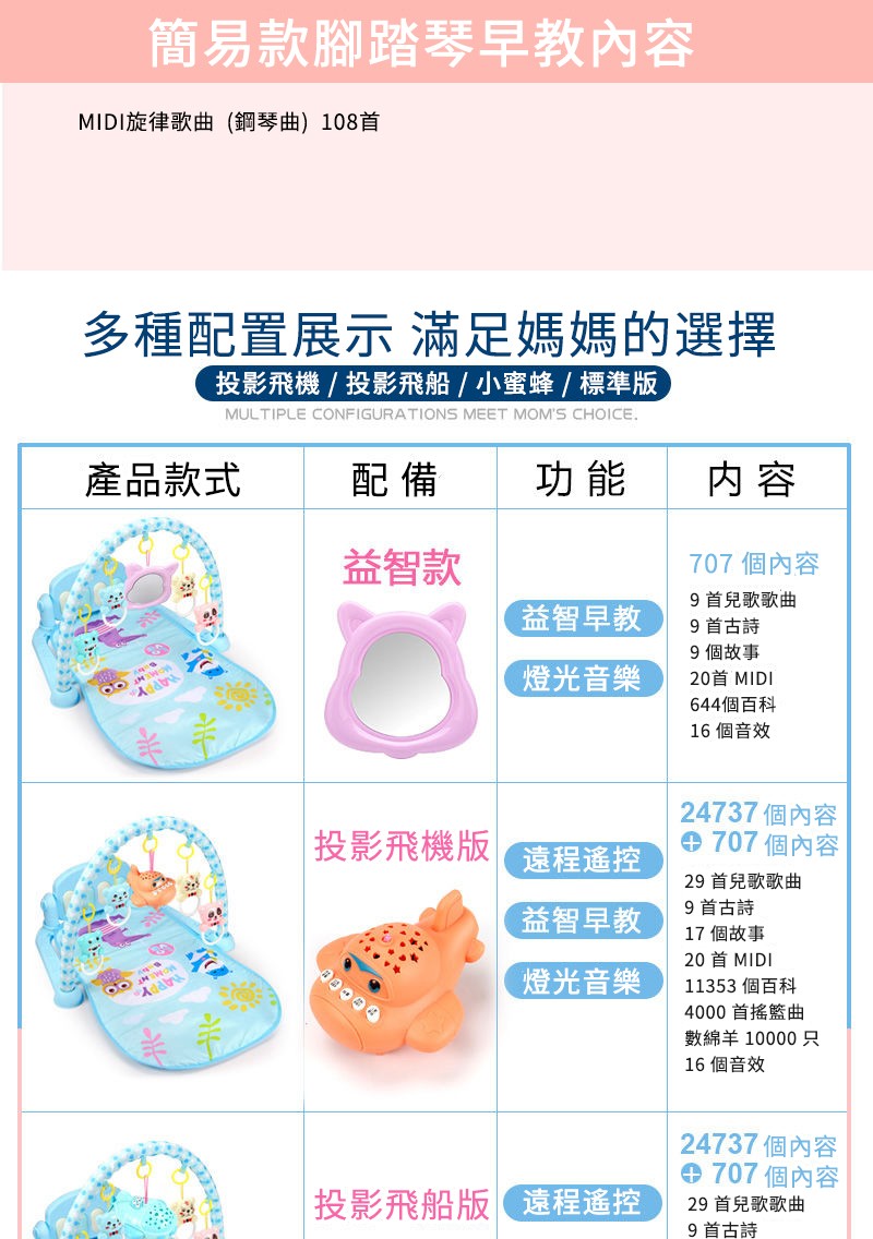 15分鐘前【破價預警】【寶寶成長特惠】0-1歲寶寶的神奇玩具-健身架音樂腳踏琴玩具,益智啟蒙好幫手! 讓寶寶從此放下手機、iPad! - 旋律款【送充電】鋼琴曲400內容+夜燈飛機+護欄