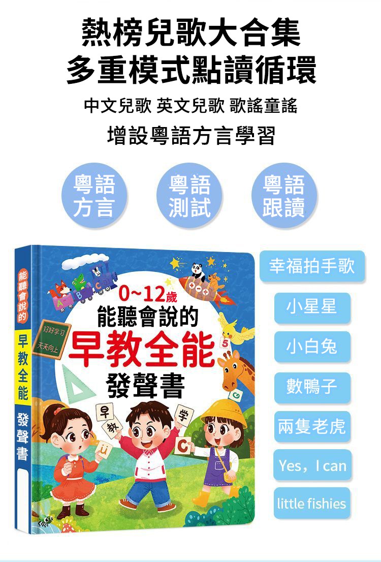 2分鐘前【二年質保 I 防水耐斯】會說話的早期教育有聲書0-12歲中英粵三語兒童早期教育啟蒙學習手指點讀書(送充電線) - 常規款【啟蒙早教】15主題800內容