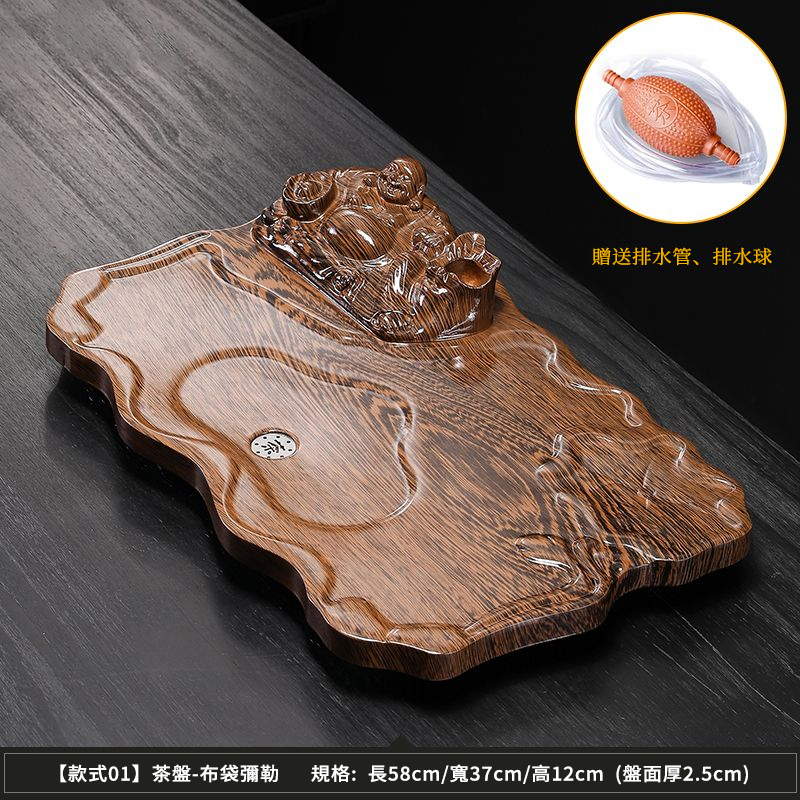 2分鐘前【天然實木】黑檀木雕刻功夫茶盤組|中式茶具套裝|實木泡茶盤 擺設收藏兩用 - 如意彌勒60*37cm【送排水管】