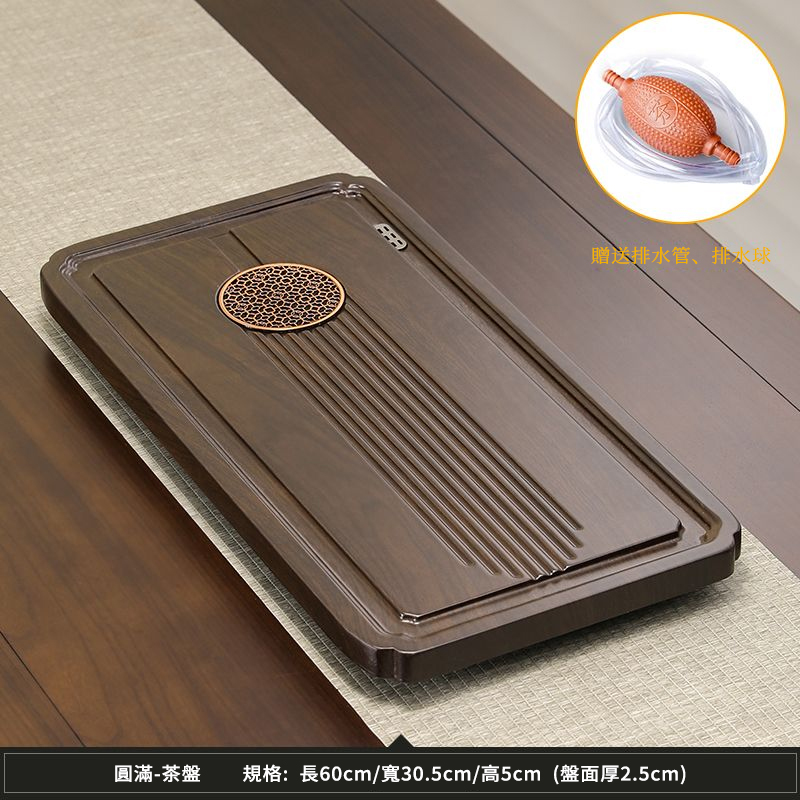 20分鐘前【天然實木】黑檀木雕刻功夫茶盤組|中式茶具套裝|實木泡茶盤 擺設收藏兩用 - 圓滿茶盤60*30cm【送排水管】